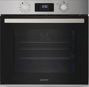 Four encastrable Indesit pyrolyse + hydrolyse, inox, Chaleur pulsée, boutons Push push, display sensitif, Turn&Go, Click&Clean, Gril basculant, 2 grilles, 1 lèchefrite, 71L, classe A++.