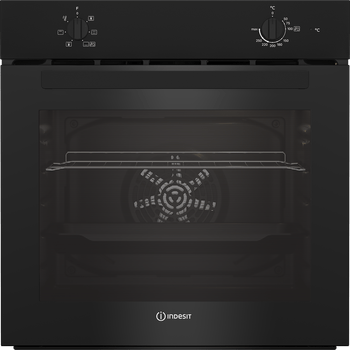 Four multifonction encastrable Indesit, hydrolyse, noir, 66 L, chaleur tournante, 2 boutons, Click&Clean, A.